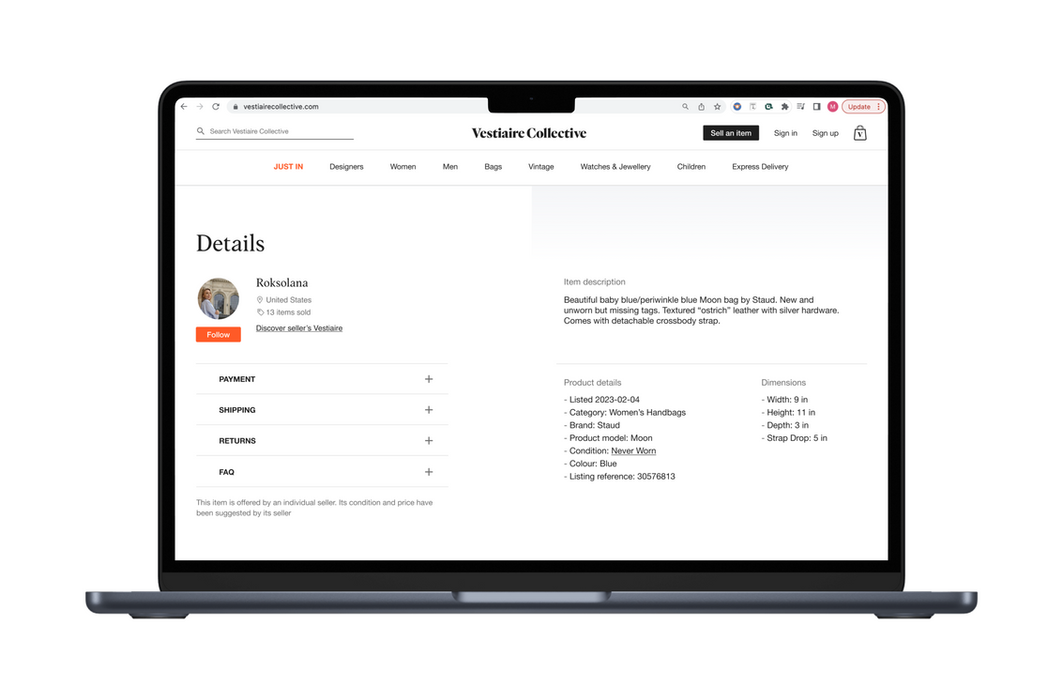 Vestiaire edit tags have been repositioned to avoid detracting from critical product information.